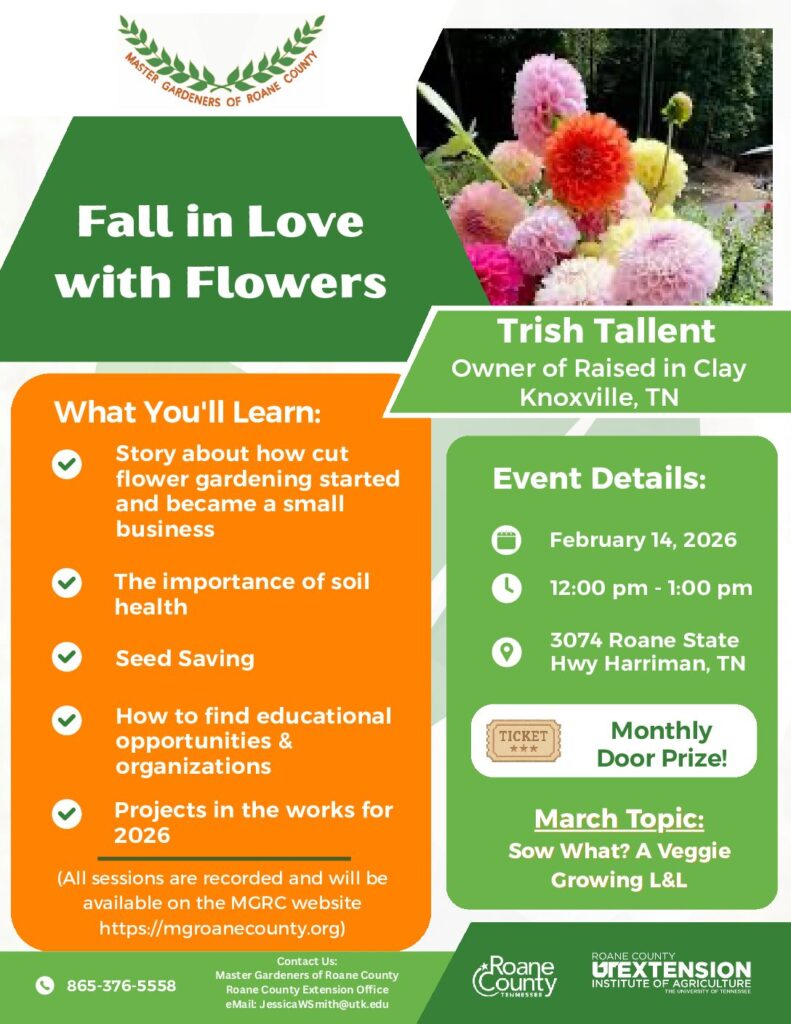 To receive updates and information on upcoming events hosted by the Master Gardeners of Roane County, subscribe at the link. https://lp.constantcontactpages.com/sl/WRUkQ9Z/mastergardeners