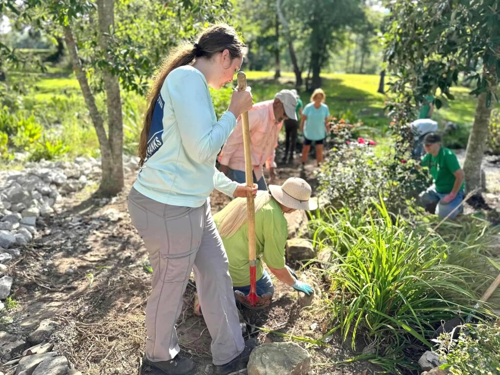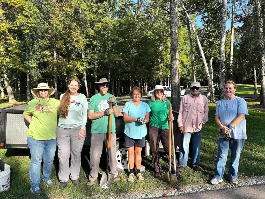 In 2023, the Master Gardeners of Roane County interns took on an ambitious project at Roane County Park: building a dry riverbed that ends in a Zuni Bowl. Public works had previously graded this part of the park, which left the area damp and boggy. To manage that excess water, we trenched out a dry riverbed and installed a Zuni Bowl at its base, redirecting the runoff into the nearby Clinch River where it naturally belongs. What looked like a daunting project at first became manageable with everyone pitching in, and together we made quick progress. For those unfamiliar, a Zuni Bowl is a rock-lined, step-pool structure built at the head of a gully. Its purpose is to slow and spread flowing water, reducing erosion while trapping sediment so it can settle.